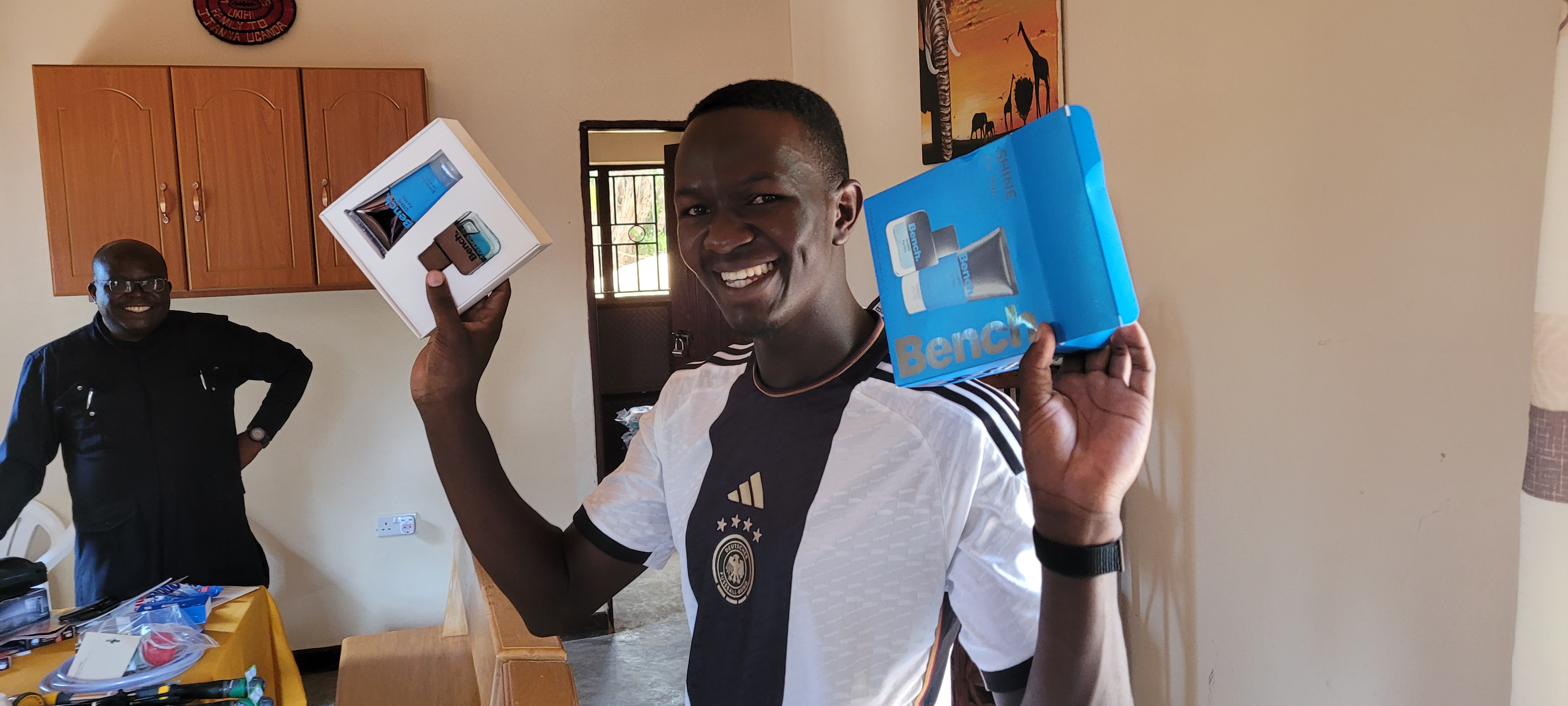 Uganda Reise 2023 27/04/2023Allgemeinadmin 09_Geschenk-fuer-Andrew Bild 11 von 81 Prayer am Abend in der Secondary School Ausblasen des Tiefbrunnens