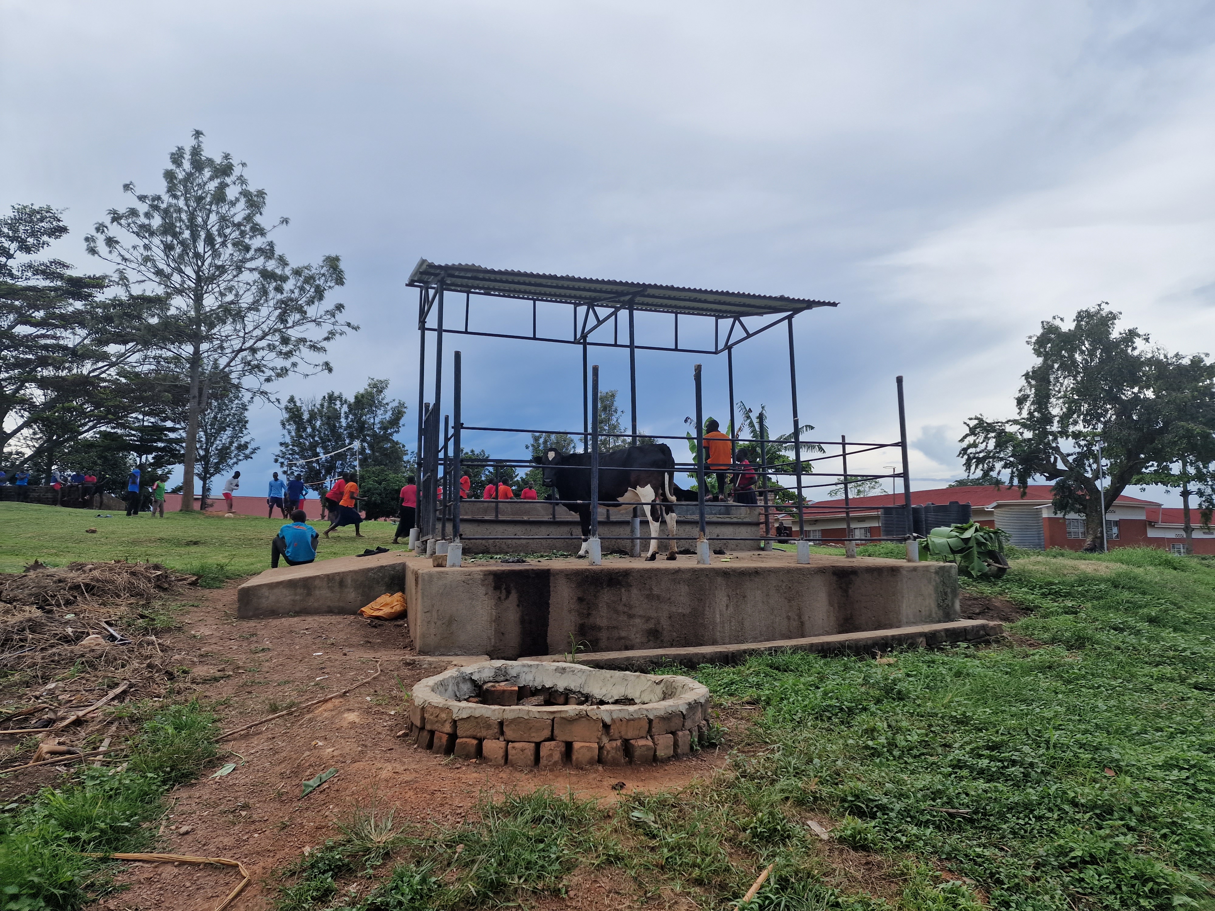 Uganda Reise 2023 27/04/2023Allgemeinadmin 17_Projekt-Kuh Bild 26 von 81 Prayer am Abend in der Secondary School Ausblasen des Tiefbrunnens