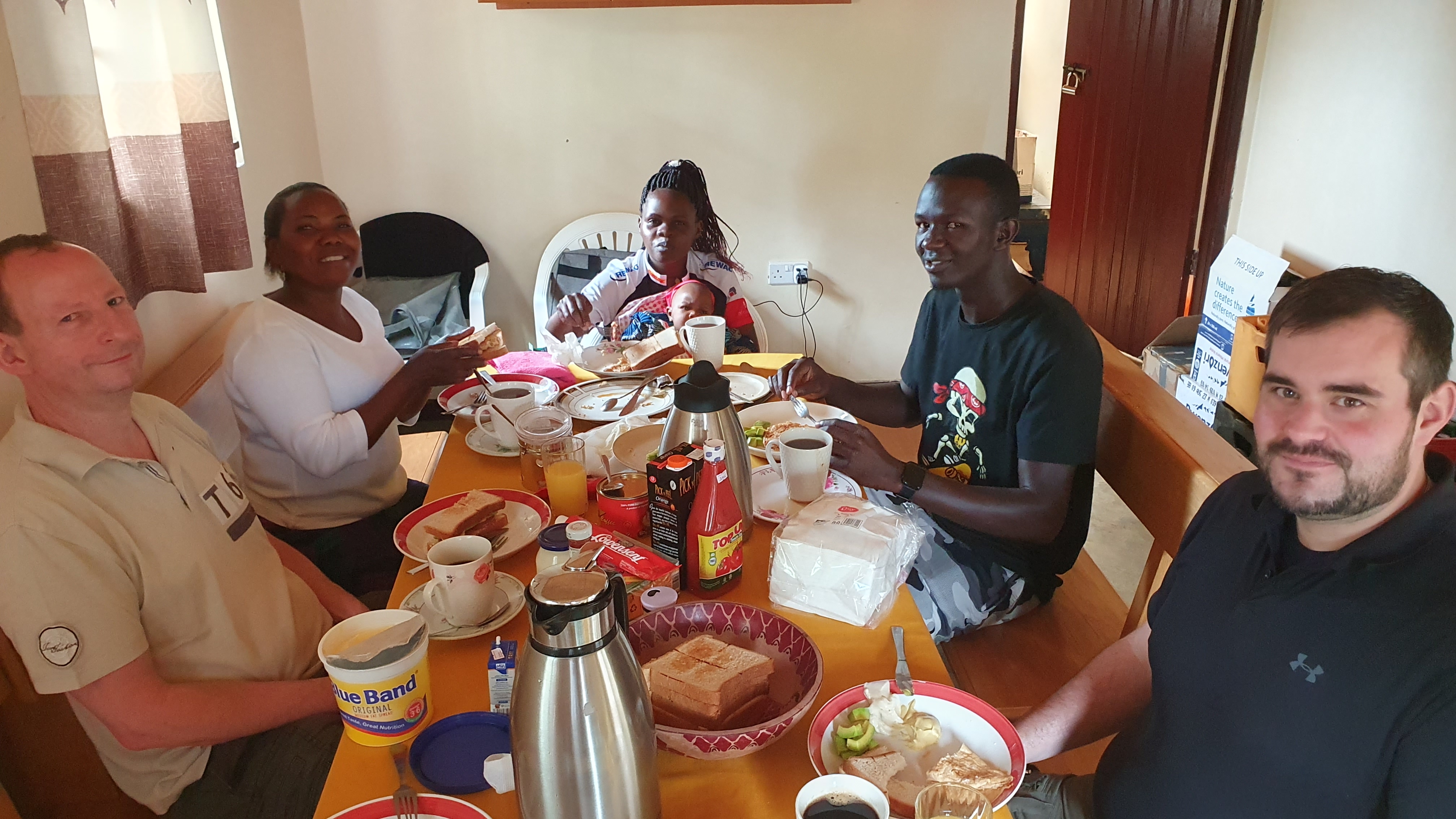 Uganda Reise 2023 27/04/2023Allgemeinadmin 18_Beim-Fruehstuecken Bild 28 von 81 Prayer am Abend in der Secondary School Ausblasen des Tiefbrunnens
