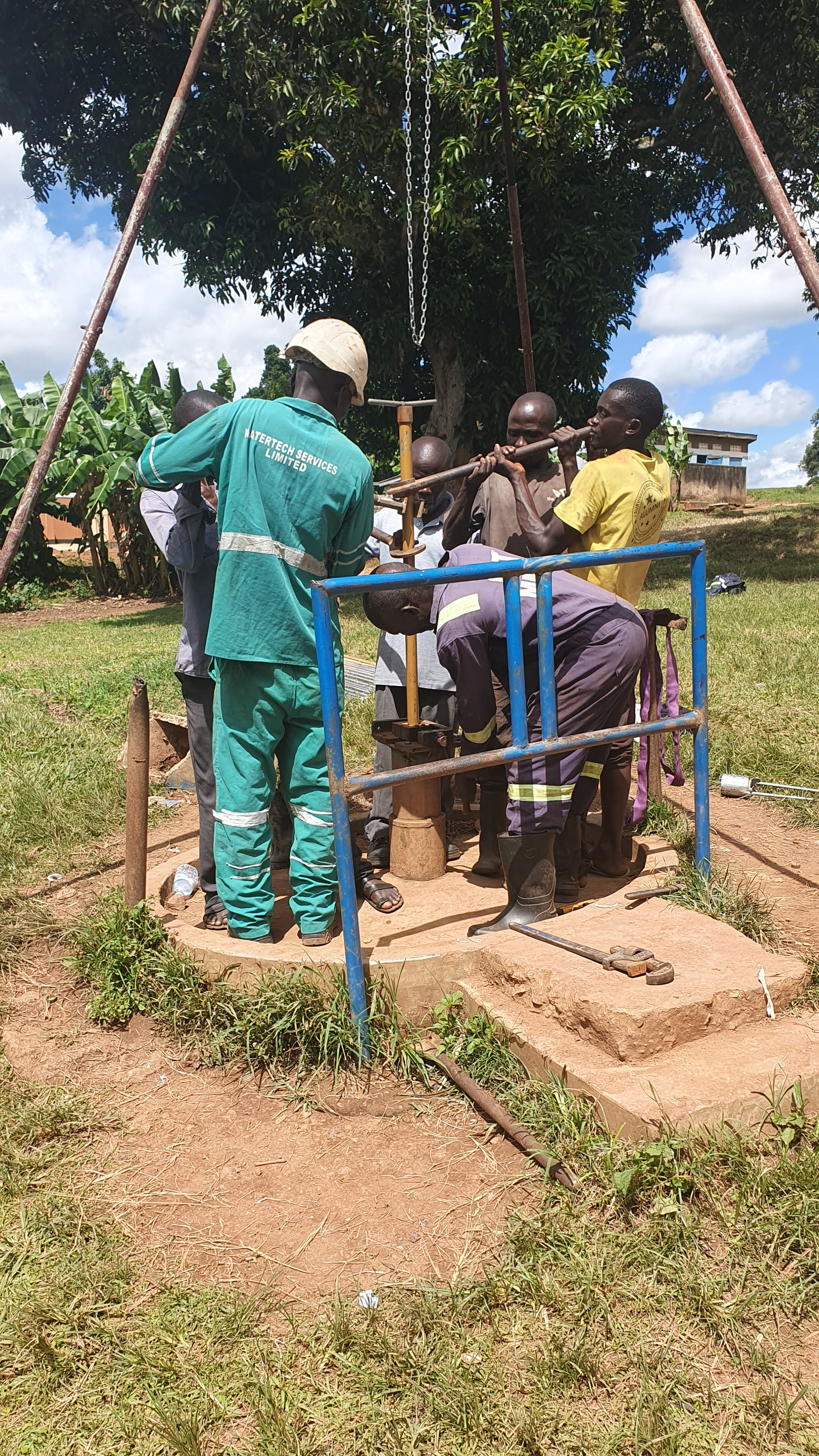 Uganda Reise 2023 27/04/2023Allgemeinadmin 34_Auch-die-Handpumpe-an-der-PS-wird-repariert Bild 58 von 81 Prayer am Abend in der Secondary School Ausblasen des Tiefbrunnens